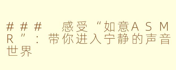 随着社交媒体的发展,“如意ASMR”也逐渐进入了大众视野,成为了一种受欢迎的放松方式。无论是在工作间隙,还是睡前聆听,ASMR都为我们提供了一种独特的疗愈体验,让繁忙的生活中多了一份安宁。