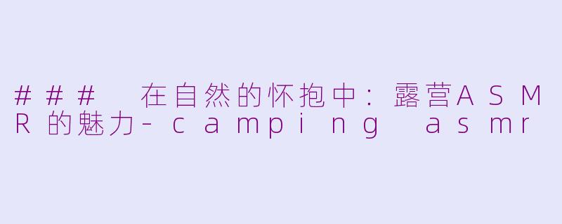 近年来,露营ASMR(自发性知觉经络反应)在许多人中间变得越来越受欢迎。对于追求放松和减压的人来说,露营ASMR提供了一种独特的身心体验。想象一下,在宁静的森林中,耳边传来树叶轻轻摇曳的声音、远处小溪潺潺的流水声,还有篝火噼啪作响的乐曲。这样的场景不仅有助于舒缓压力,更能带来身临其境的感觉。
