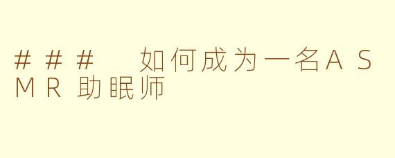 随着现代生活节奏的加快,越来越多的人开始寻求放松与安宁,而ASMR(自发性知觉经络反应)成为了一种流行的助眠方式。那么,如何成为一名ASMR助眠师呢?