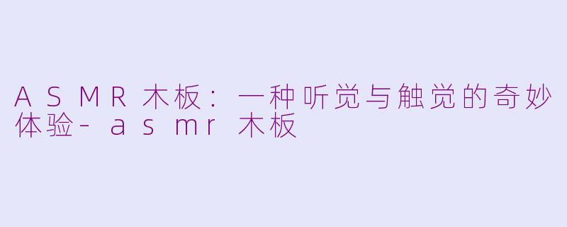 ASMR(自发性知觉-meridian反应)近年来受到了越来越多人的关注,而“ASMR木板”则成为其中一种独特而受欢迎的声音触发器。木板的声响,细腻而富有质感,无论是敲击、刮擦还是摩擦,都会带来一种令人放松的感觉。