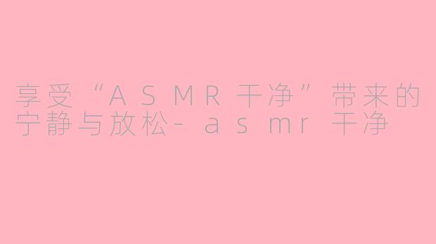 随着生活节奏的加快,越来越多的人开始寻求放松与减压的方式。而“ASMR”这股风潮,看似简单,却以其独特的魅力吸引了无数追随者。在众多ASMR类型中,“ASMR干净”更是一种让人倍感宁静的体验。
