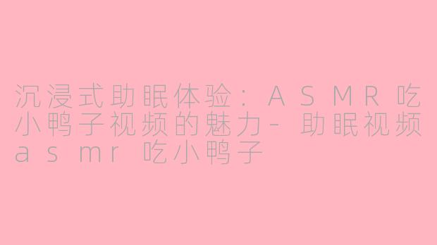 在现代快节奏的生活中,越来越多的人面临失眠的问题。为了解决这个困扰,许多网友开始寻求助眠视频的帮助,其中ASMR(自主感觉经络反应)视频尤为受到欢迎。而“吃小鸭子”的ASMR视频,则以其独特的声音和画面,成为许多人放松身心、助眠的首选。