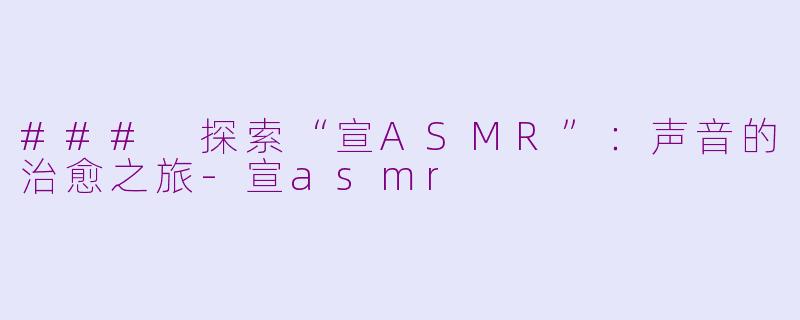 在现代快节奏的生活中,越来越多的人开始寻求放松和慰藉的方式,其中“宣ASMR”成为了一种独特的现象。ASMR(自主感觉经络反应)是一种通过特定声音刺激引发的愉悦感受,帮助人们缓解压力、改善睡眠。而“宣ASMR”则是其在中文语境下的进一步传播与发展。