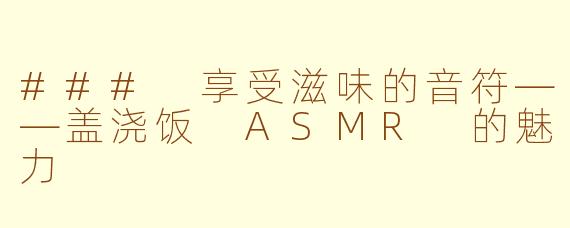 在快节奏的生活中,许多人希望能够找到一种放松的方式,而盖浇饭 ASMR 恰好满足了这种需求。盖浇饭,这道简单却美味的食物,将白米饭与丰富的配菜完美结合。而 ASMR(自发性知觉经络反应)则通过声音刺激,带来身心上的舒适感。