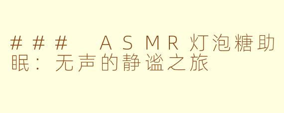 在现代社会,越来越多的人面临失眠的问题。为了解决这个困扰,ASMR(自主知觉经络反应)逐渐成为了人们放松和助眠的新选择。尤其是“灯泡糖”这一特殊的ASMR类型,凭借其独特的声音和节奏,吸引了众多爱好者。