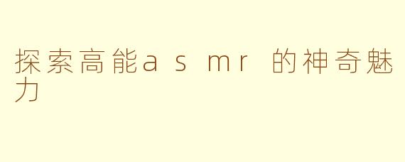 总的来说,高能asmr是一种神奇的现象,具有强大的放松和治疗功效。因此,我们应该正确地运用这一技术,让它成为我们生活中的一种健康和放松的方式。