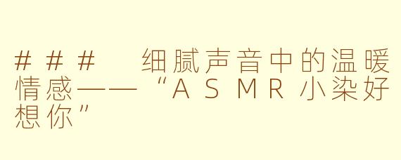 ASMR(自发性知觉经络反应)是一种独特的体验,通过轻柔的声音和细腻的动作,带给人们放松和愉悦的感受。在这个纷杂的时代,越来越多的人开始关注和喜爱ASMR内容,而“小染好想你”正是其中一位备受欢迎的ASMR主播。