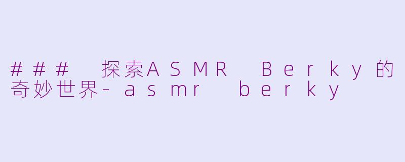 ASMR(自主感官经络反应)是一种独特的 sensory 体验,许多人通过观看视频或听音频来感受这种奇妙的放松效果。其中,ASMR Berky 作为一个备受欢迎的内容创作者,以其独特的风格和温暖的声音吸引了大量观众。