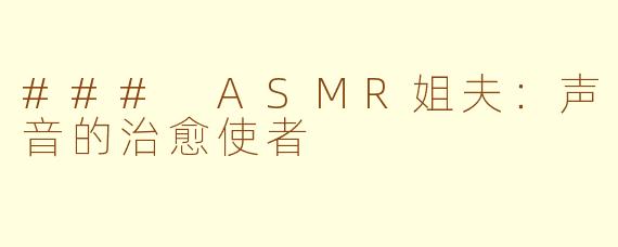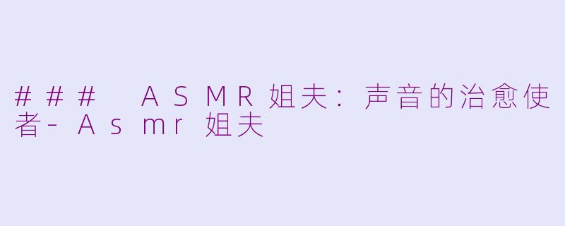 在当今社会,ASMR(自发性知觉经络反应)已经成为一种备受欢迎的放松方式。而“ASMR姐夫”作为这一领域的代表人物,以其独特的声音和温暖的风格,吸引了大量粉丝。作为一名ASMR创作者,他善于通过细腻的声音和轻柔的语调,带给听众无与伦比的舒缓体验。