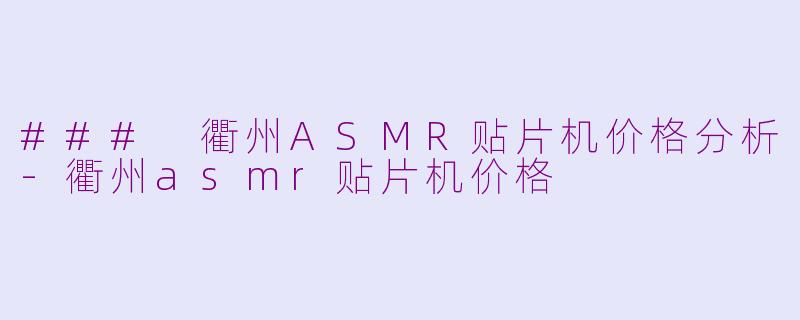 近年来,随着电子产品的不断普及,贴片机作为重要的生产设备,其需求逐渐增加。衢州作为一个快速发展的制造业基地,ASMR贴片机的市场前景备受关注。ASMR贴片机以其高效率和精确度,广泛应用于电子元器件的自动化贴装。