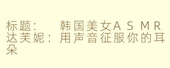无论是在家中独自欣赏,还是在工作之余放松身心,观看韩国美女ASMR达芙妮的视频都能为你带来片刻的宁静和愉悦,让你感受到声音的魅力。