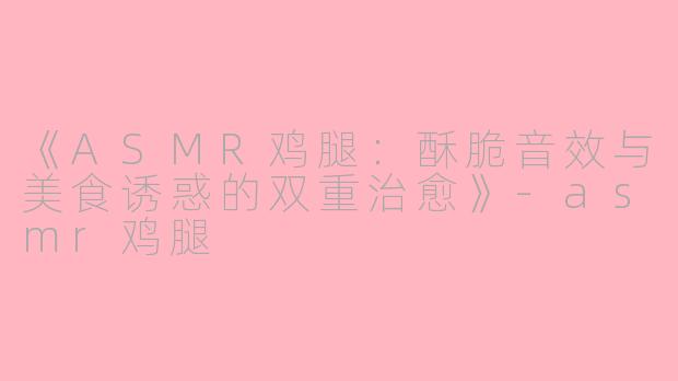 在ASMR(自发性知觉经络反应)的世界里,声音是触发放松与愉悦感的关键。而当这种细腻的感官体验遇上金黄酥脆的炸鸡腿,便诞生了一种奇妙的治愈组合——“ASMR鸡腿”。
