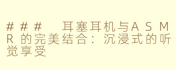在近年来的音频体验中,ASMR(自发性知觉经络反应)已成为一种受欢迎的放松方式。而将耳塞耳机(earpod)与ASMR结合,更是为用户提供了一种前所未有的沉浸感。耳塞耳机凭借其优秀的隔音效果,可以有效屏蔽外界噪音,让听者全情投入到ASMR的世界中各种轻声细语、耳边低语和自然音效的美妙之中。