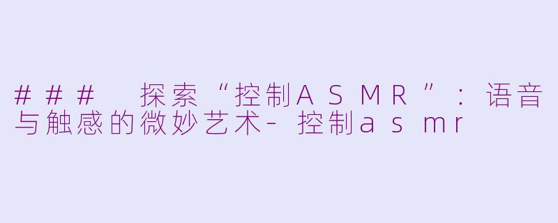 “控制ASMR”不仅是一门技巧,也是一种艺术表现,无论是为了疗愈,还是单纯的享受,ASMR都在逐步改变我们对声音与感觉的理解。
