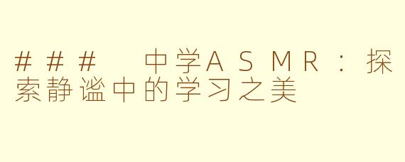 随着ASMR(自主知觉经络反应)的流行,这种通过特定声音刺激带来的放松体验,逐渐进入了中学的学习环境。中学阶段的学生面临着学业压力,ASMR的引入为他们提供了一种新的放松方式。