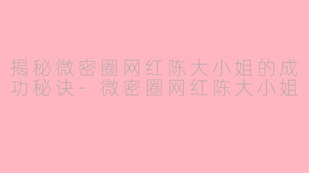 近年来,微密圈上涌现出了一批备受关注的网红,而陈大小姐就是其中的一员。作为一名成功的微密圈网红,陈大小姐拥有着庞大的粉丝群体和不错的影响力,她的成功秘诀究竟是什么呢?