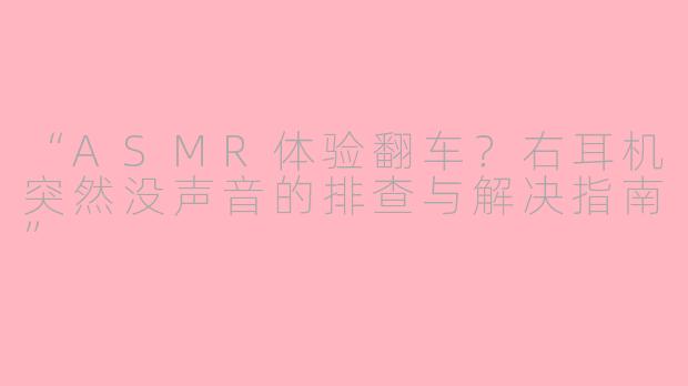 ASMR爱好者最期待的放松时刻,却被右耳机“罢工”彻底打破——这种单侧无声的故障不仅影响沉浸感,还可能掩盖关键触发音效。遇到此类问题,先别急着换设备,不妨按以下步骤排查: