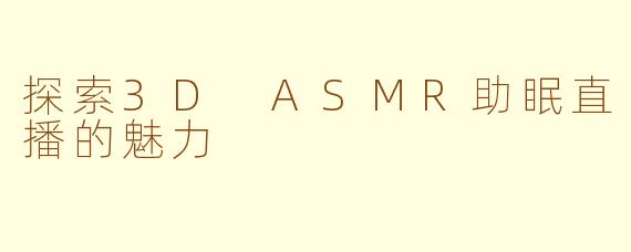 近年来,随着人们生活节奏的加快,失眠问题日益严重,而3D ASMR助眠直播逐渐成为一种受欢迎的放松方式。ASMR(自发性知觉经络反应)以柔和的声音和细腻的触感为特色,可以帮助观众放松心情,缓解压力。