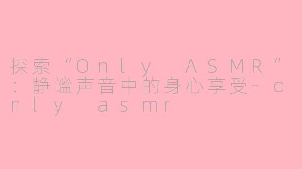 近年来,ASMR(自发性知觉经络反应)逐渐走入大众视野,成为一种独特的放松和减压方式。而“Only ASMR”作为这一现象的专属平台,为爱好者提供了一个全新的视觉和听觉体验。