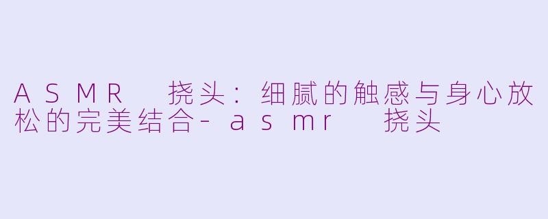 近年来,ASMR(Autonomous Sensory Meridian Response,自主感官经络反应)现象在网络上广受欢迎,许多人通过观看ASMR视频来寻求放松与舒缓压力。其中,“挠头”作为一种声音和触感的结合,成为了许多ASMR爱好者的最爱。