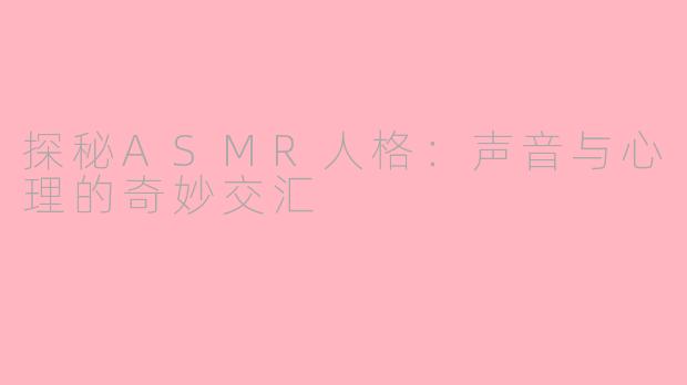 ASMR(自发性知觉经络反应)现象近年来引起了广泛关注。它不仅是一种通过声音引发的独特感官体验,更与个体人格特质有着密不可分的联系。ASMR人格通常指那些对轻柔声音、细腻触感和安静环境敏感的人,他们往往更容易感受到ASMR带来的放松与愉悦。
