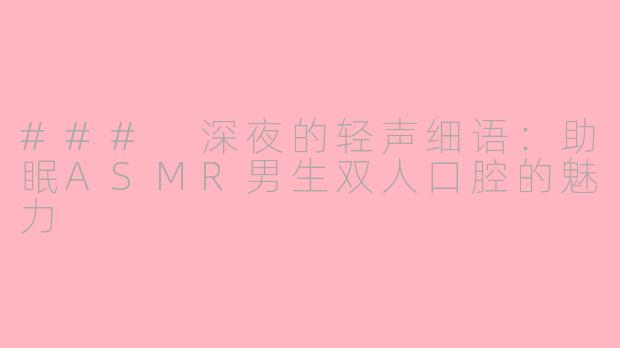 总之,男生双人口腔的ASMR不仅是一种声音的享受,更是一种情感的寄托。在静谧的夜晚,闭上眼睛,聆听那温柔的细语,让心灵得以片刻的宁静与放松,带你进入甜蜜的梦乡。