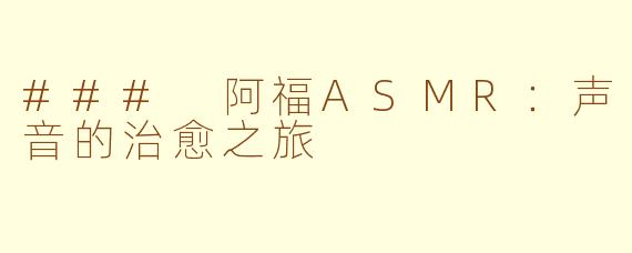 在现代快节奏的生活中,越来越多的人开始寻找放松和减压的方式,而ASMR(自主感觉经络反应)便成为了热门选择。阿福ASMR以其独特的声音风格和细腻的声音效果,赢得了众多粉丝的喜爱。
