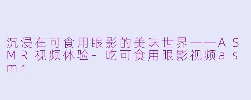 在当今的网络时代,ASMR(自主感官经络反应)已经成为许多人放松心情的一种新方式。而最近兴起的“可食用眼影”视频,以其独特的结合性吸引了大批观众。在这些视频中,创作者通过将眼影与美食相结合,制作出色彩斑斓的可食用眼影,让人在视觉与听觉上都能享受独特的体验。
