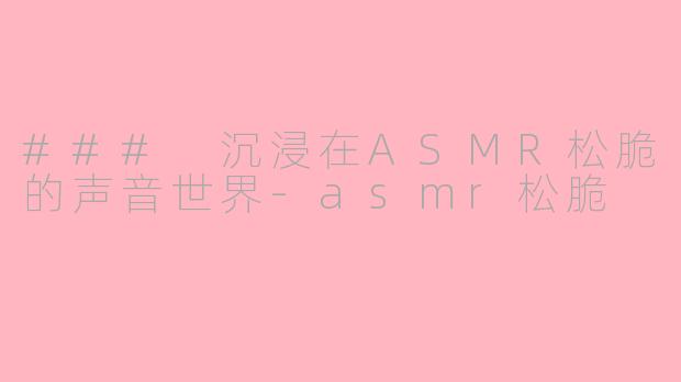ASMR(Autonomous Sensory Meridian Response)是一种令人放松的体验,许多人通过听特定的声音来减压和获得愉悦。在众多ASMR类型中,松脆声效尤其受青睐。无论是啃咬新鲜水果,还是撕开包装纸,这些声音总能在耳边轻轻响起,带来令人愉悦的感觉。
