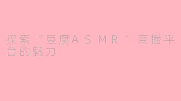 在当今网络时代,ASMR(自发性知觉经络反应)视频因其独特的宁静与舒缓效果受到广泛欢迎。而“豆腐ASMR”作为这一领域的新星,以其细腻的声音和生动的表现形式吸引了不少粉丝。许多人好奇,豆腐ASMR究竟在哪里直播?