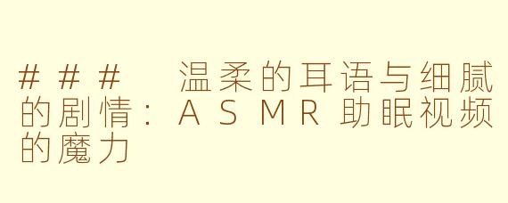 对于失眠或焦虑的人来说,ASMR助眠视频无疑是一种有效的自我疗愈方式。它让观众在耳边细腻的声音中找到宁静,仿佛有人陪伴,带来安慰与安心。寻找合适的ASMR视频,或许能成为每个人夜晚放松、自我关怀的重要习惯。