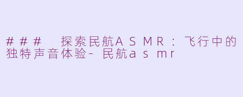通过对民航ASMR的深入探索,未来的航空旅行将更加人性化,旅客不仅是一个个体的存在,更是一个在声响中联结的整体。