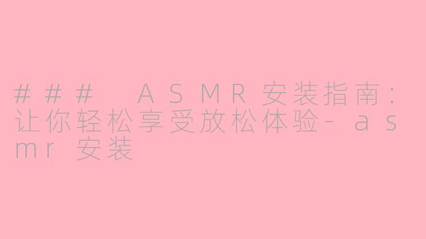 随着ASMR(自发性知觉经络反应)越来越受到欢迎,越来越多的人希望通过特定的声音和画面来获得放松和愉悦的体验。那么,如何有效地安装和体验ASMR呢?