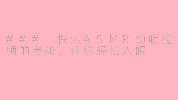 在现代快节奏的生活中,越来越多的人感受到压力与焦虑,为了寻求放松与安宁,许多人开始寻找助眠的解决方案。其中,ASMR(自发性知觉经络反应)助眠视频逐渐成为热门选择。ASMR视频通过提供轻柔的声音、微妙的触发和视觉刺激,帮助观众放松身心,缓解紧张情绪。