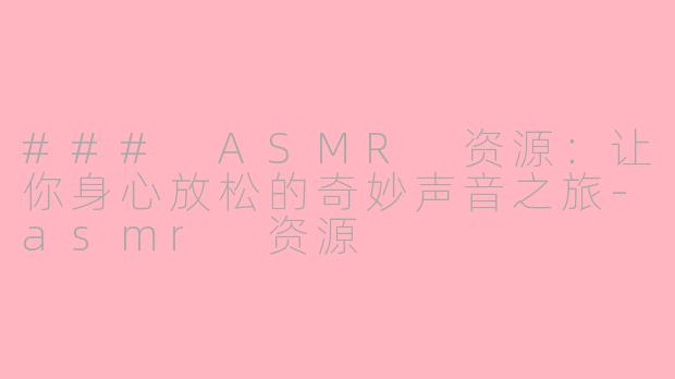 总之,ASMR资源丰富多样,无论是视频、音频还是社交媒体内容,都可以为你带来放松和愉悦体验。让我们一起探索这一声光交织的奇妙世界吧!