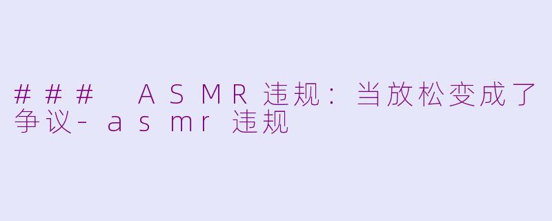 随着ASMR(自主感觉经络反应)在网络上的普及,越来越多的人通过观看ASMR视频来放松身心。然而,这一现象也伴随着一些违规行为的出现,引发了广泛的讨论。