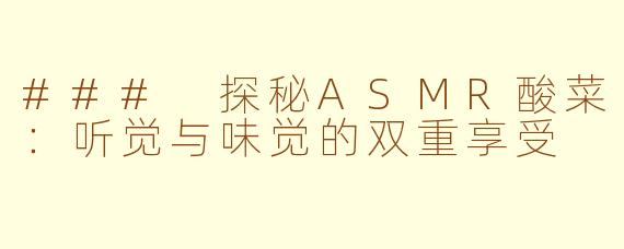 随着ASMR(自主感觉经络反应)现象的流行,许多人开始探索各种声音带来的奇妙体验。而“ASMR酸菜”作为一种独特的美食声音,吸引了众多爱好者的关注。酸菜不仅是独具风味的美食,其发酵过程中发出的“咕噜”声、剁碎时的“咔嚓”声,都能激发观众的放松感和愉悦感。