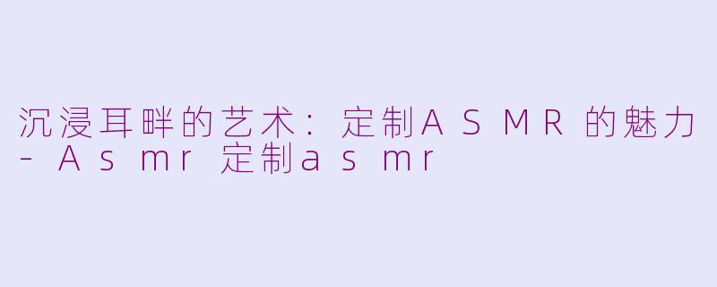 总而言之,定制ASMR不仅是一种声音的享受,更是一种心灵的慰藉。通过这样的方式,每个人都可以找到自己的“声音疗愈”,享受生活中的小确幸。