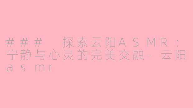 总之,云阳ASMR不仅是一种声音体验,更是一种心灵的寄托。在这个喧嚣的世界中,让我们通过云阳的声音找到内心的平静与满足。