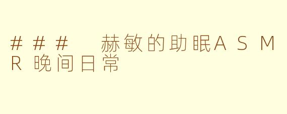 在静谧的空气中,赫敏时常会闭上眼睛,深呼吸,将所有的烦恼抛诸脑后。在这个温馨的夜晚,一切都是那么安静与和谐。最终,她在ASMR的陪伴下,进入了梦乡,迎接崭新的一天。