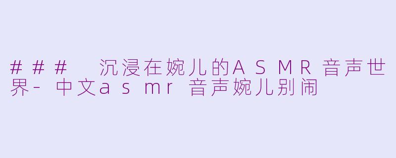 在喧嚣的生活中,寻找一丝宁静已成为许多人追求的目标。近年来,ASMR(自发性知觉经络反应)作为一种新兴的放松方式,受到了越来越多人的喜爱。其中,中文ASMR音声创作者“婉儿别闹”以其独特的声音和温暖的风格,吸引了大量粉丝。