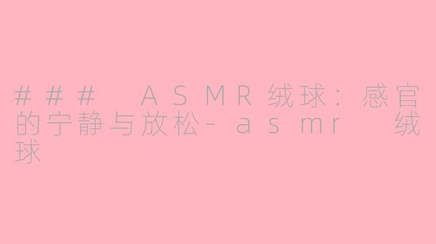 总的来说,ASMR绒球不仅是声音与触感的结合,更是现代人放松心情的一种新方式。无论是学习、工作还是夜晚的休息,享受绒球ASMR都能让生活多一份宁静。