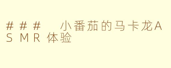 在一个阳光明媚的午后,小番茄决定挑战自己,制作一些美味的马卡龙,并用ASMR的方式记录下整个过程。她在厨房里,将细腻的杏仁粉和糖粉混合,然后仔细打发蛋白,直到呈现出完美的泡沫。随着搅拌器的声响,厨房里弥漫着淡淡的甜香。