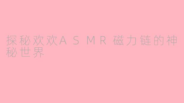 近年来,ASMR磁力链成为了许多人日常放松的一种方式,而其中的欢欢ASMR更是备受瞩目。欢欢ASMR通过磁力链传播着各种轻柔的声音,让人们在疲惫的生活中找到片刻的宁静。据说欢欢ASMR的磁力链藏着许多神秘的故事和技巧,让人们不禁好奇探寻。