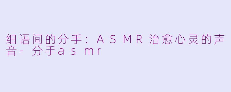 分手,常常是人生路上的一大伤痛。随着社交媒体的普及,情感的波动在我们心中引发了深刻的共鸣。而ASMR(自发性知觉经络反应)作为一种独特的声音体验,逐渐成为人们缓解情感压力的新方式。