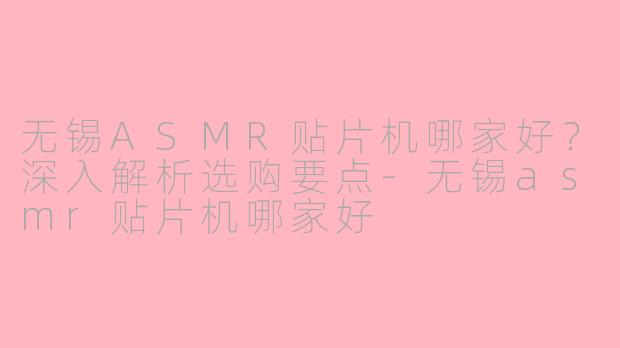 综合多方面因素,如品牌口碑、技术支持以及价格等,无锡地区的几家知名贴片机供应商如“无锡优佳电子”、“无锡华科自动化”等都备受推崇。建议在选购前,多方对比,实地考察,确保选择到最适合自己需求的ASMR贴片机。