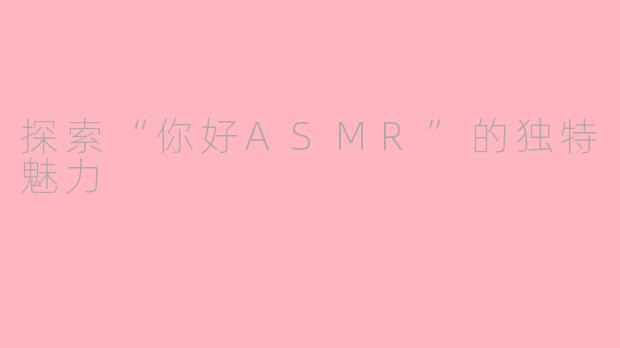 在现代快节奏的生活中,越来越多的人开始寻求放松和舒缓的方法,而ASMR(自主感官经络反应)正是其中一种备受欢迎的选择。所谓“你好ASMR”,是一种通过特定的声音和视觉刺激,帮助人们缓解压力、促进睡眠的独特体验。