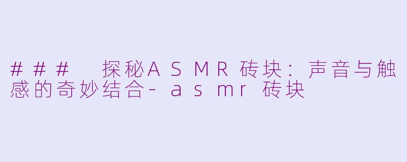 近年来,ASMR(自主感官经络反应)逐渐成为一种流行的放松方式。其中,ASMR砖块以其独特的声音与触感,吸引了不少爱好者的关注。ASMR砖块通常指的是一些特定材质的砖块,通过敲击、摩擦等动作,制造出细腻的声音,带给人们一种愉悦的感觉。