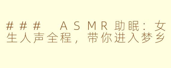 随着生活压力的增加,越来越多的人面临睡眠问题。而ASMR(自发性知觉经络反应)作为一种新兴的放松方式,逐渐受到关注。尤其是女生的ASMR人声,因其温柔细腻的音质,成为许多人入眠的良伴。