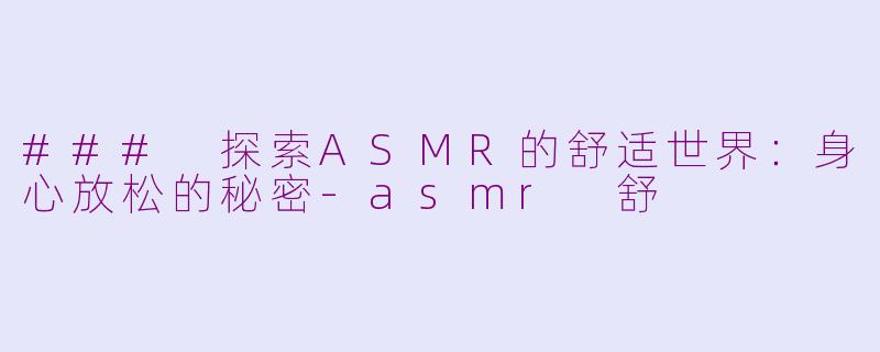 ASMR(自发性知觉经络反应)是一种能够带来身心舒适的体验,近年来在网络上迅速兴起。它通过轻柔的声音、细腻的触感和独特的视觉效果,使人们产生愉悦的放松感。许多人在观看ASMR视频时,能够感受到头皮的微妙发麻和全身的轻松,这种现象被称为“ASMR舒”。